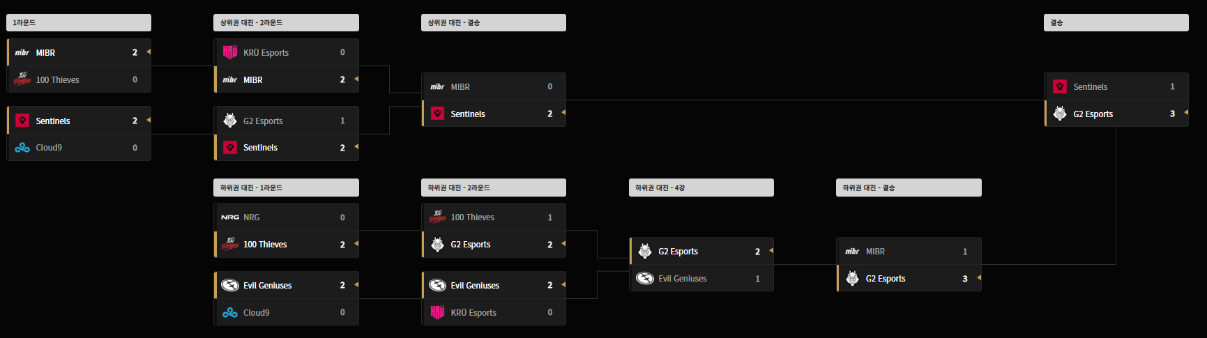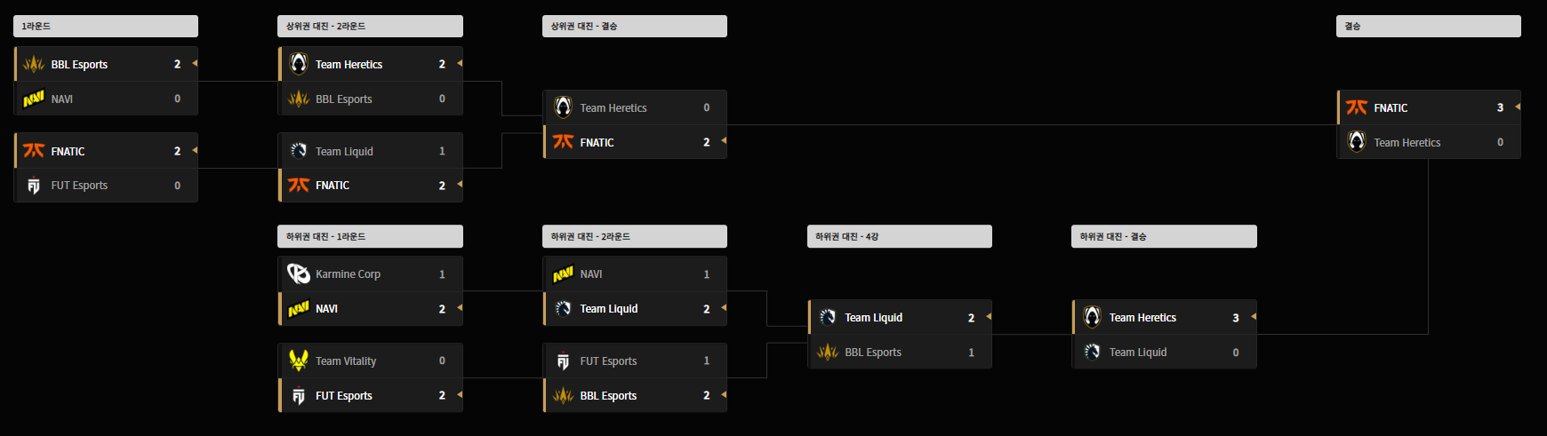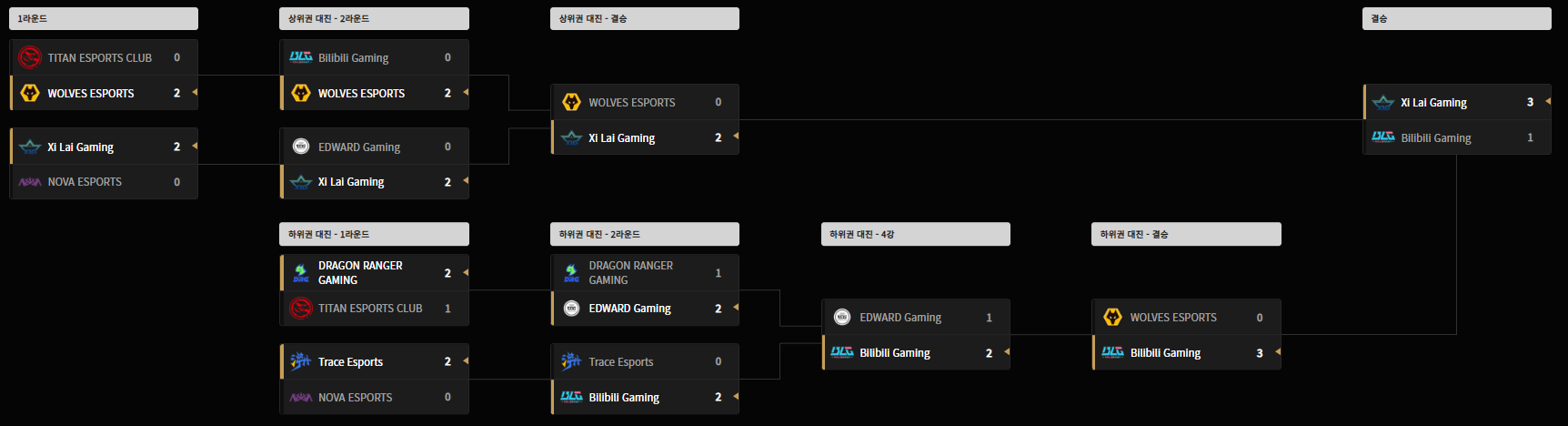 | 1시드 | Rex Regum Qeon | G2 Esports | FNATIC | Xi Lai Gaming |