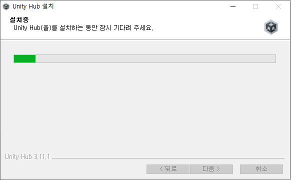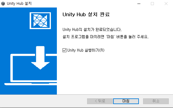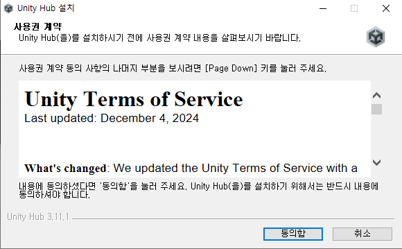 2. 버튼을 클릭 한 후 'UnityHubSetup'을 실행합니다. 실행하면 아래와 같은 화면이 나옵니다.
